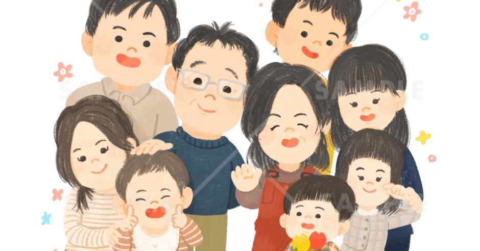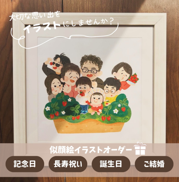 イラストレーターのナツノマエコです。還暦祝いのご家族イラストを描かせていただきましたので、ご紹介します。