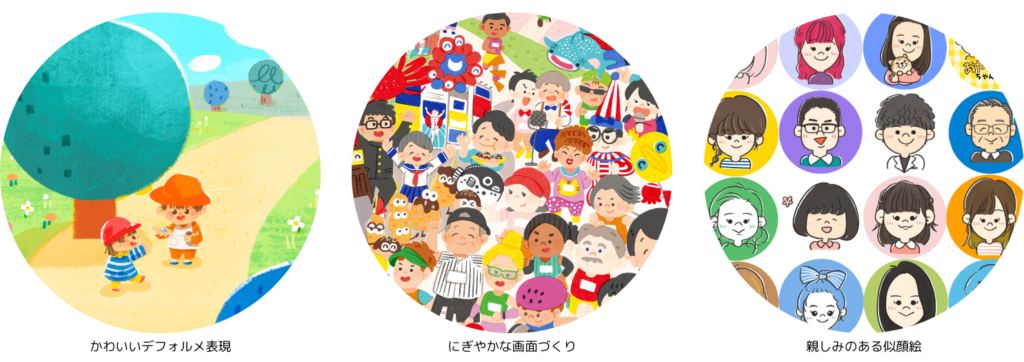 「あなたの分身が笑顔を届けるお手伝い!」をコンセプトに、思い出イラストや似顔絵を描いています。