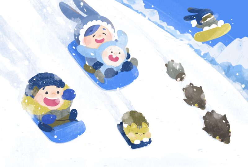 それぞれの「たのしい」が、雪山の中を行き交うような一枚になりました。