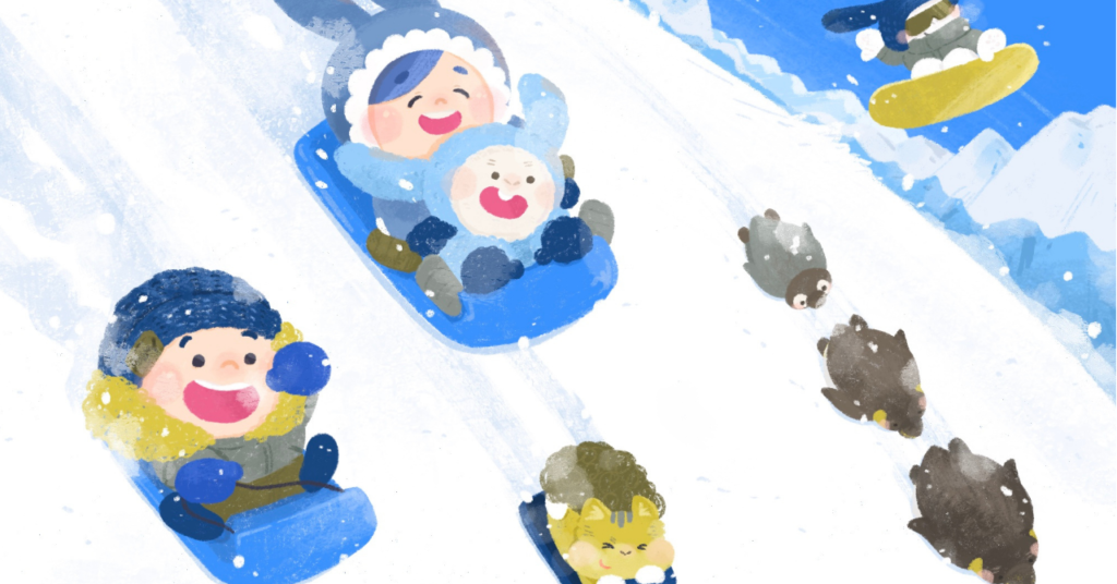 それぞれの「たのしい」が、雪山の中を行き交うような一枚になりました。
